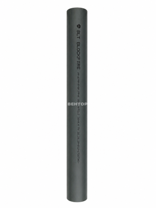 Труба напорная из полипропилена PP-R и стеклонаполненного полипропилена PP-R-GF с добавлением жаростойких композитов серии SLT BLOCKFIRE GREEN SDR 7,4 диаметром 32 мм и толщиной стенки 4,4 мм. Номинальное давление PN20. Ппредназначена для прокладки водозаполненных и воздухозаполненных спринклерных систем автоматического пожаротушения (АУПТ) и внутренних противопожарных водопроводов (ВПВ), а также совмещенных хозяйственно-противопожарных водопроводов.