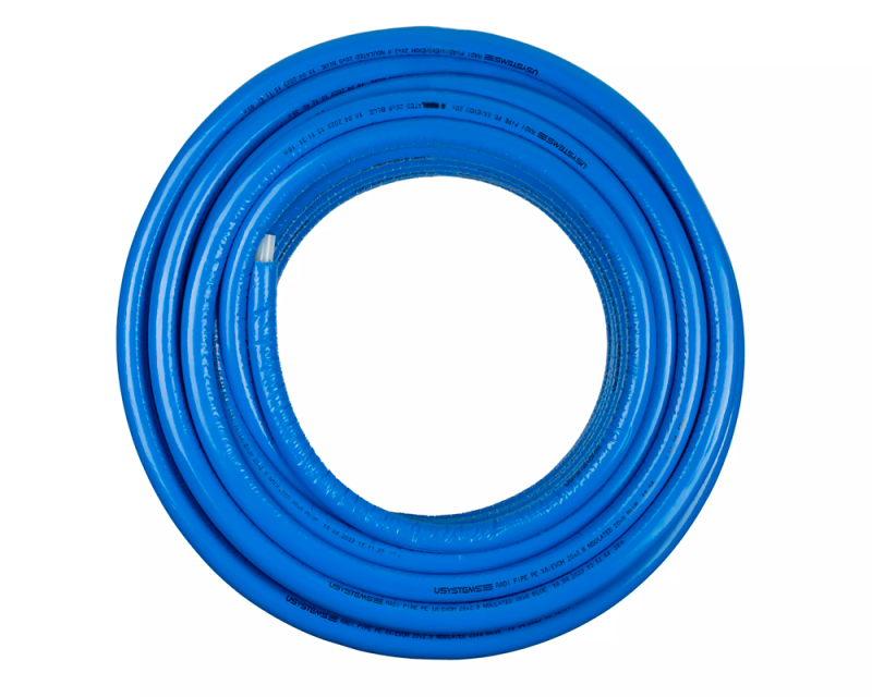 Usystems Труба Radi Pipe из сшитого полиэтилена PE-Xa с антидиффузионным слоем EVOH диаметром 20 мм, толщиной стенки 2,2 мм в теплоизоляции толщиной 6 мм. Поставляется в бухте 50 метров. Цвет трубы белый. Цвет изоляции синий. Рабочее давление 10 бар.