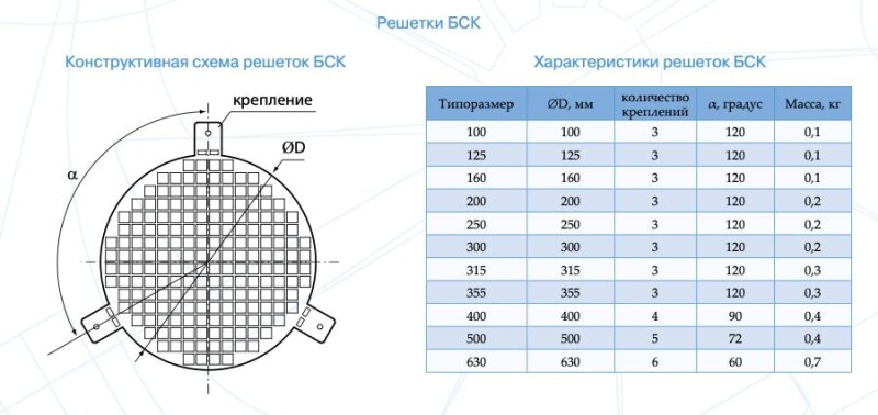 Решетка Арктос БСК для круглых каналов из оцинкованного листа, предназначена для защиты круглых канальных вентиляторов и других элементов вентиляционных систем от попадания в них посторонних предметов.