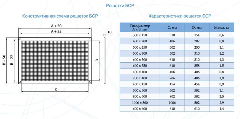 Решётки защитные Арктос БСР предназначены для прямоугольных каналов применяются для защиты прямоугольных вентиляторов и других составляющих систем вентиляции от попадания посторонних предметов.