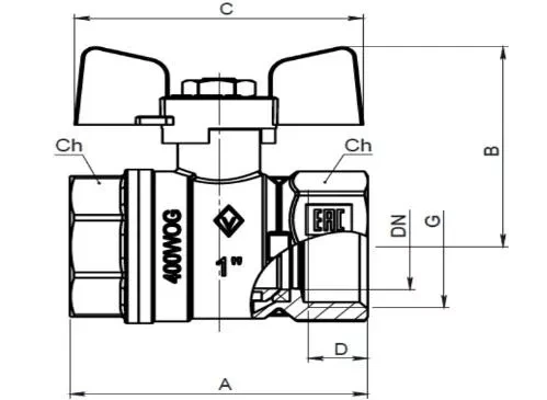 - Диаметр условного прохода (ДУ): от 1/2" до 2" (в данном случае 1").