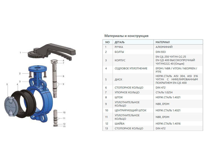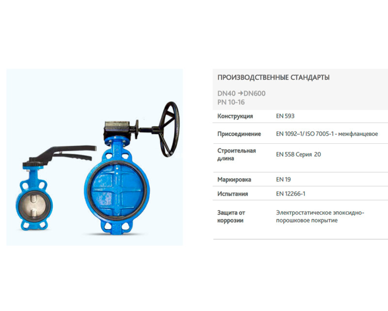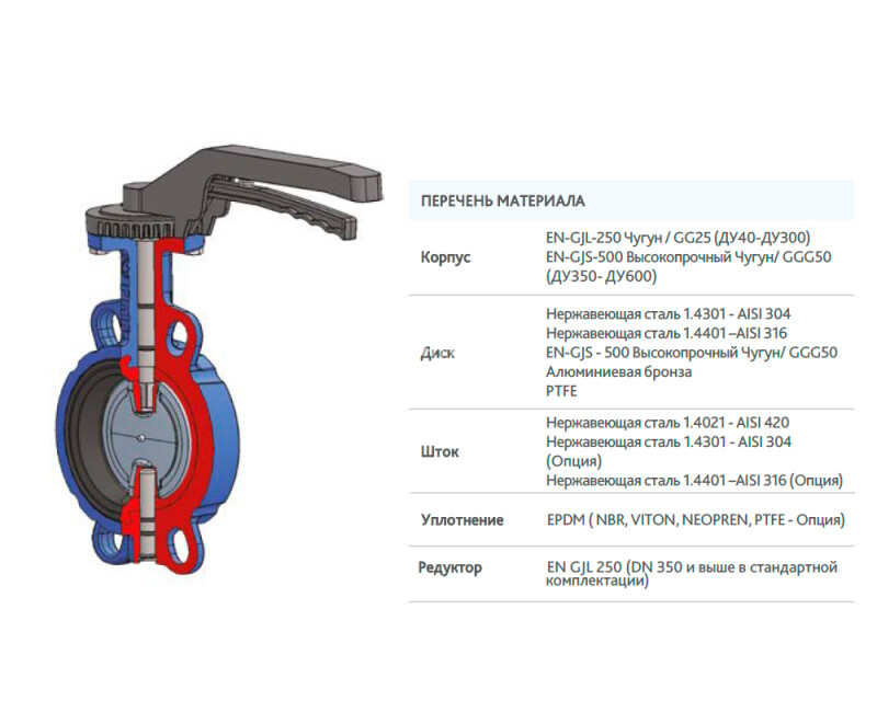 Затвор дисковый межфланцевый FAF 3500 с рукояткой, чугун-нерж.сталь, EPDM