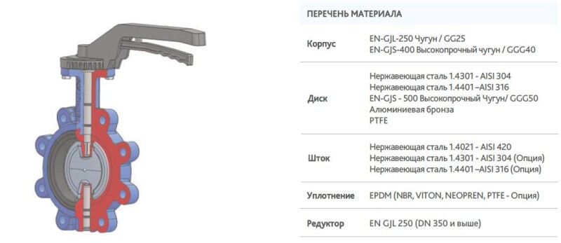 Затвор дисковый с резьбовыми проушинами FAF 3600 с рукояткой, чугун-нерж.сталь, Viton