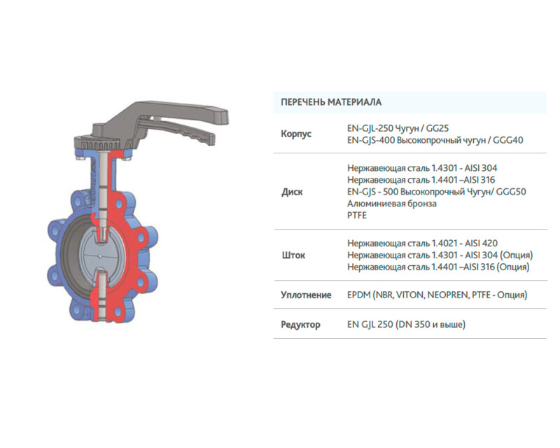 Затвор дисковый FAF 3650 с рукояткой, чугун-чугун, EPDM
