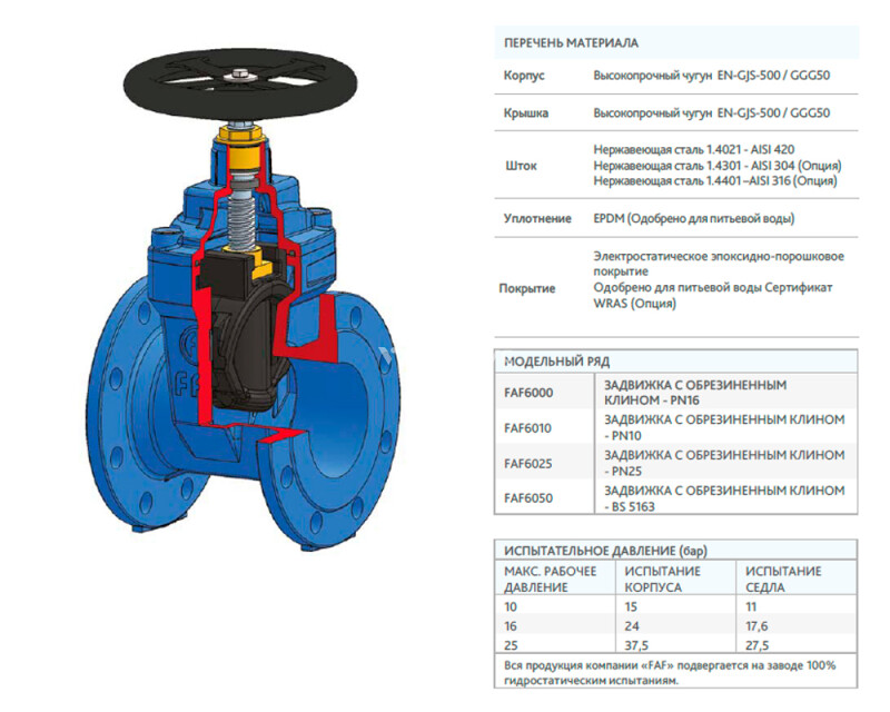 Задвижка с обрезиненным клином с голым штоком FAF 6000 PN 10