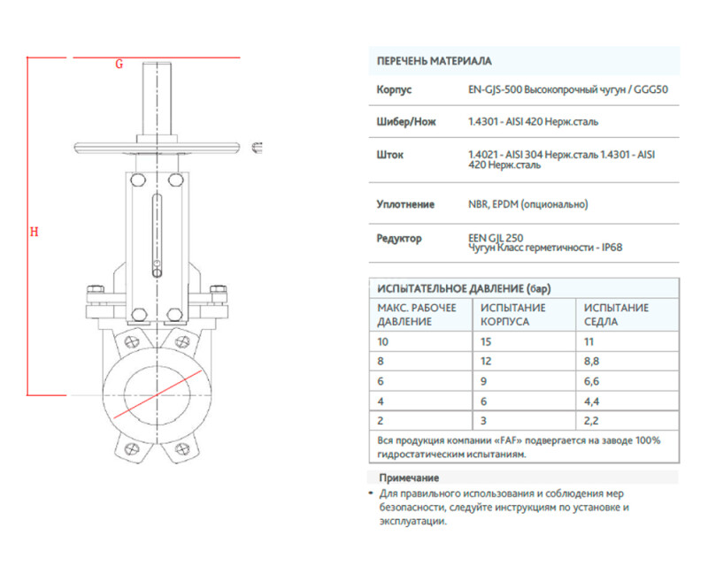 Задвижка шиберная ножевая FAF 6550 с невыдвижным штоком