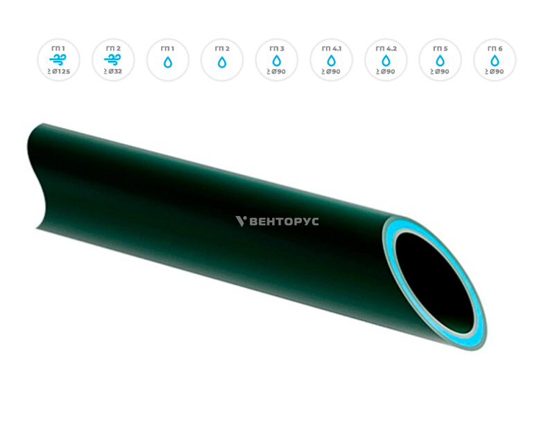 Диаметр, мм | 32, 40, 50, 63, 75, 90, 110, 125, 160 |