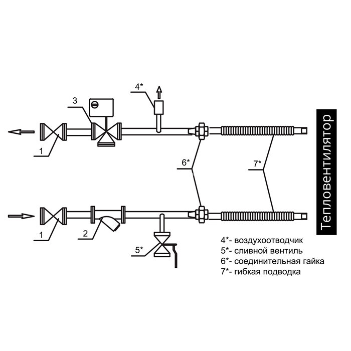 Комплект для подключения SUR 7 серия комплектов для тепловентиляторов CR ONE, CR, CR PRO. Предназначен для подключения тепловентиляторов с водяным источником тепла, также тепловых завес, выполняя функцию смесительного узла терморегулирования. Терморегулирующий узел отвечает за поддержание стабильного расхода теплоносителя через теплообменник.