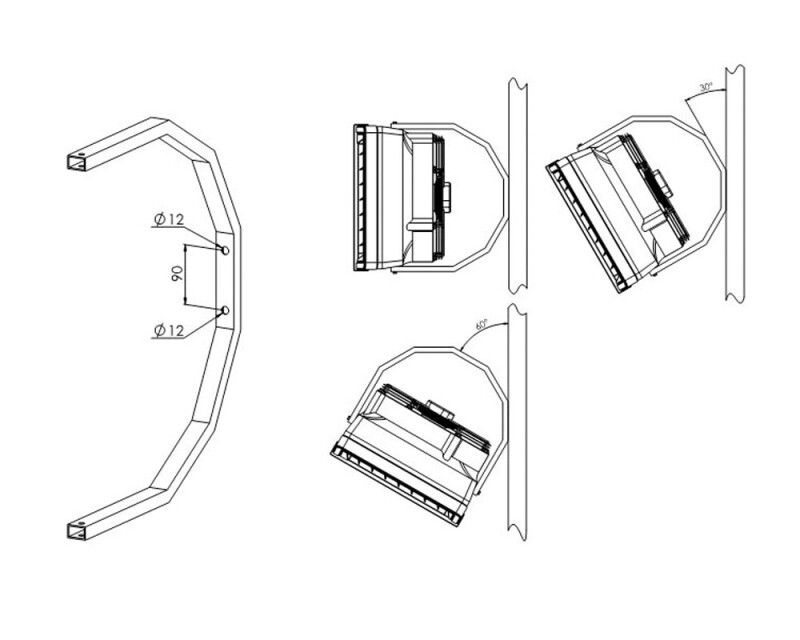 Данная консоль позволяет регулировать положение тепловентилятора по горизонтали с фиксацией под углами 30°, 60° и 90°, что дает возможность изменять угол потока воздуха без дополнительных измерений. Простой монтаж обеспечивается за счет продуманной конструкции с предустановленными углами наклона.