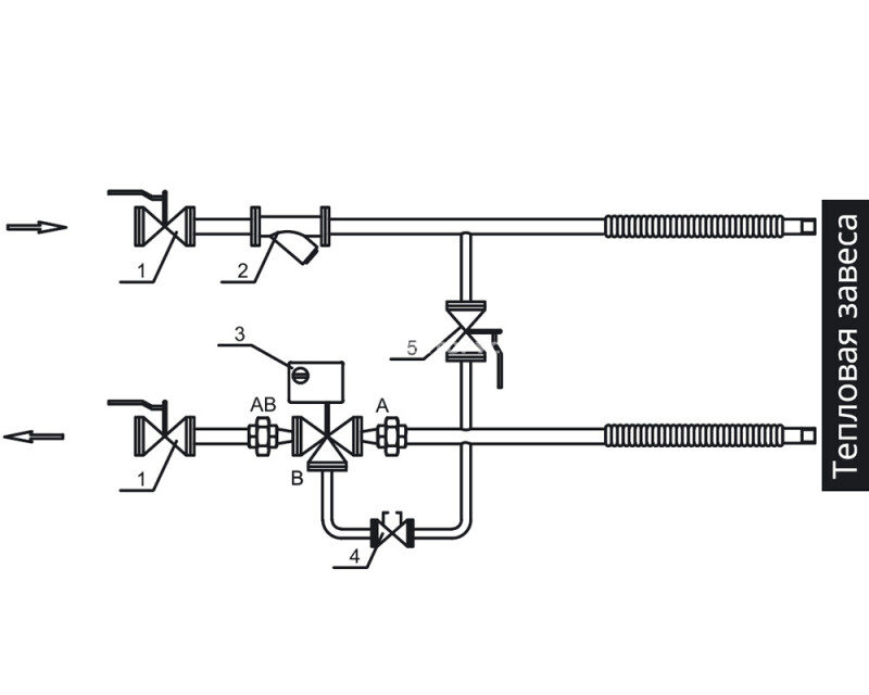 - Защита калорифера от замерзания при отключенной завесе за счет поддержания минимального протока теплоносителя.