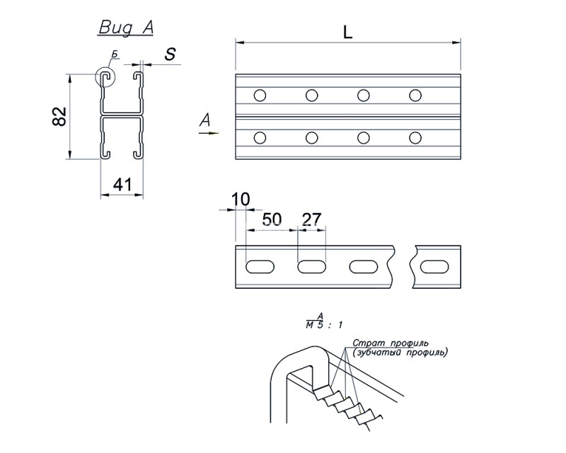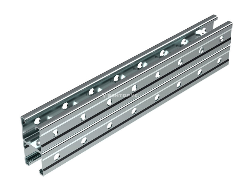 Профиль двойной ТМС Strut 41x82 (горячий цинк) — это усиленный монтажный профиль из стали марки 08ПС по ГОСТ 1050-88 с антикоррозионным покрытием методом горячего цинкования. Увеличенное сечение обеспечивает повышенную несущую способность, сохраняя все функциональные преимущества системы STRUT, включая зубцы для точного позиционирования и сквозную перфорацию по всей длине.