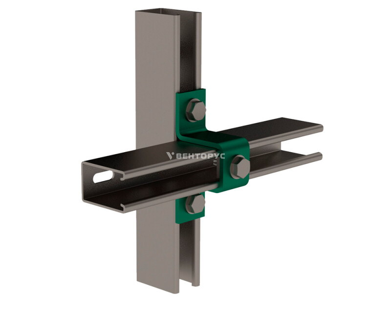 Конструкция элемента обеспечивает простоту монтажа с использованием стандартного крепежного узла системы (болт-шайба-канальная гайка), что сохраняет высокую скорость сборки характерную для STRUT-систем. Надежность соединения и коррозионная стойкость делают этот элемент идеальным решением для создания долговечных несущих конструкций.