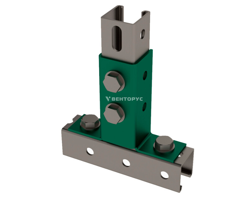 Соединитель применяется для формирования Т-образных соединений в конструкциях из профилей Strut, а также для крепления элементов систем к стенам, полам и перекрытиям. Особенно эффективен в стесненных условиях монтажа, где требуется компактное и надежное соединение под прямым углом.