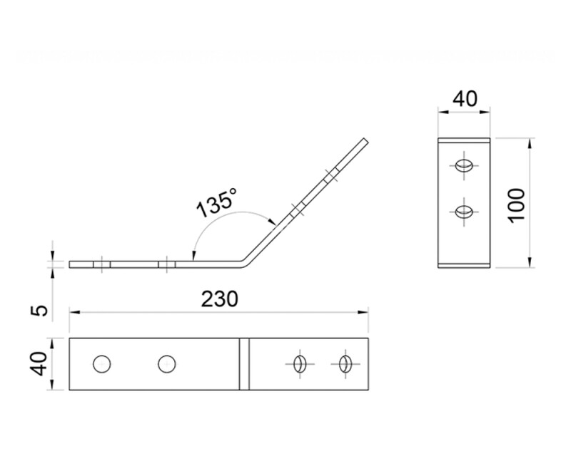Основным преимуществом уголка является его способность создавать точные соединения под углом 135°, что расширяет возможности проектирования сложных конструкций. Четыре монтажных отверстия обеспечивают надежную фиксацию и распределение нагрузки.