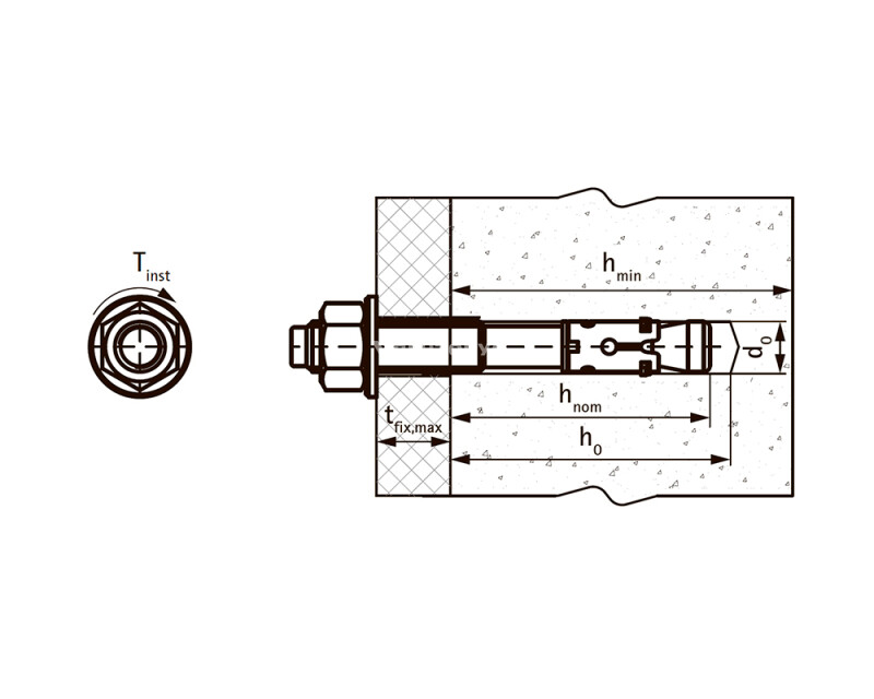 Основными преимуществами клинового анкера являются возможность нагружения сразу после монтажа и высокая несущая способность даже при малых межосевых расстояниях.