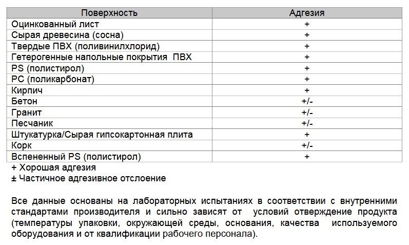 - Адгезия к пористым строительным материалам: кирпичу, штукатурке, бетону, дереву, камню
