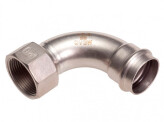 Угольники 90° раструбные VARMEGA Inox Press с внутренней резьбой изготовлены из нержавеющей стали AISI 304, уплотнительные кольца из EPDM. Для применения фитингов требуется обжатие с помощью пресс-инструмента.